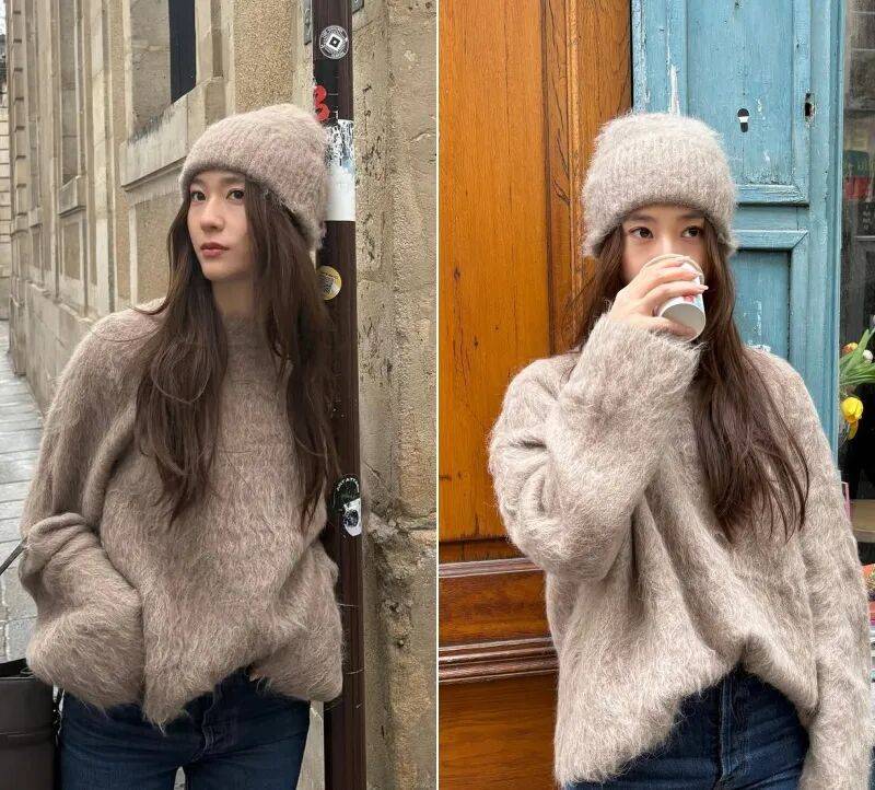 很多明星博主戴针织帽,其实都爱把头发往前拨,可以弱化颧骨、下颌角,显得脸小又流畅,轻松get头包脸。▼