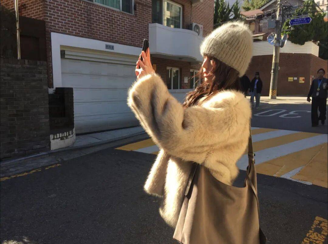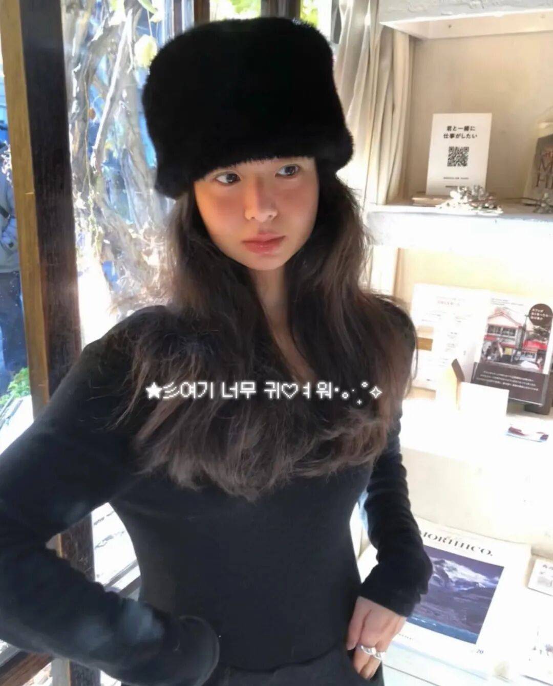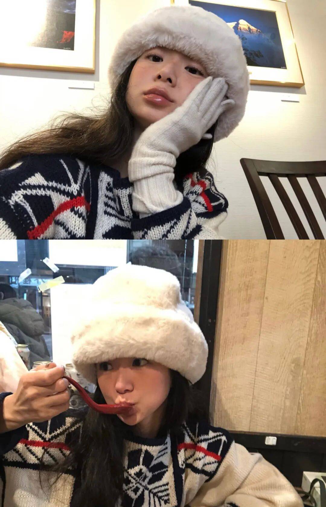 郑秀晶脸型偏长,冷帽挺适合她,她的脸已经很小了,但每次还是会往前拨很多头发。 ▼