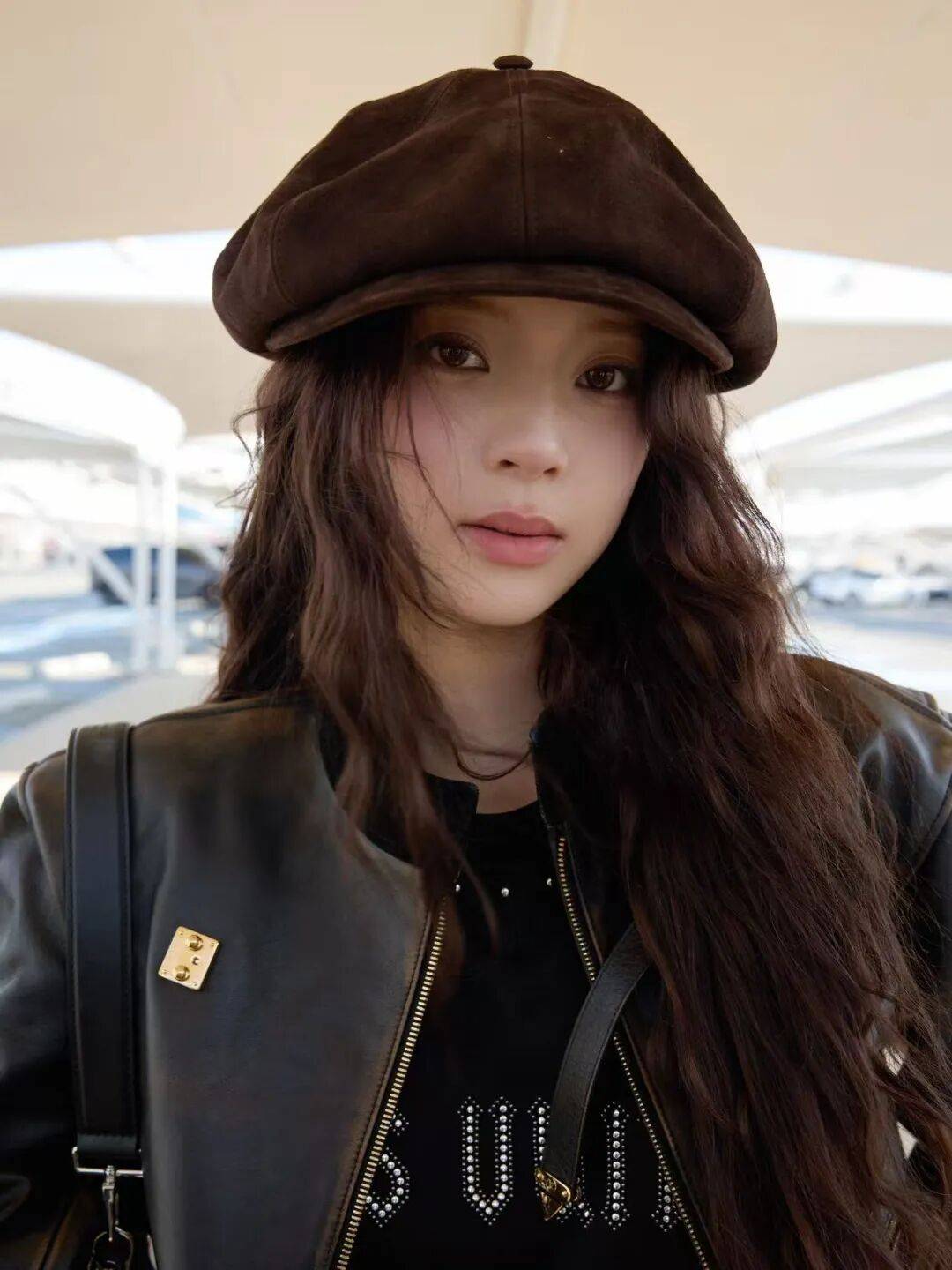 张婧仪这顶贝雷帽上的装饰应该是帽子自带的,但是完全可以用耳环或者漂亮纽扣来diy▼