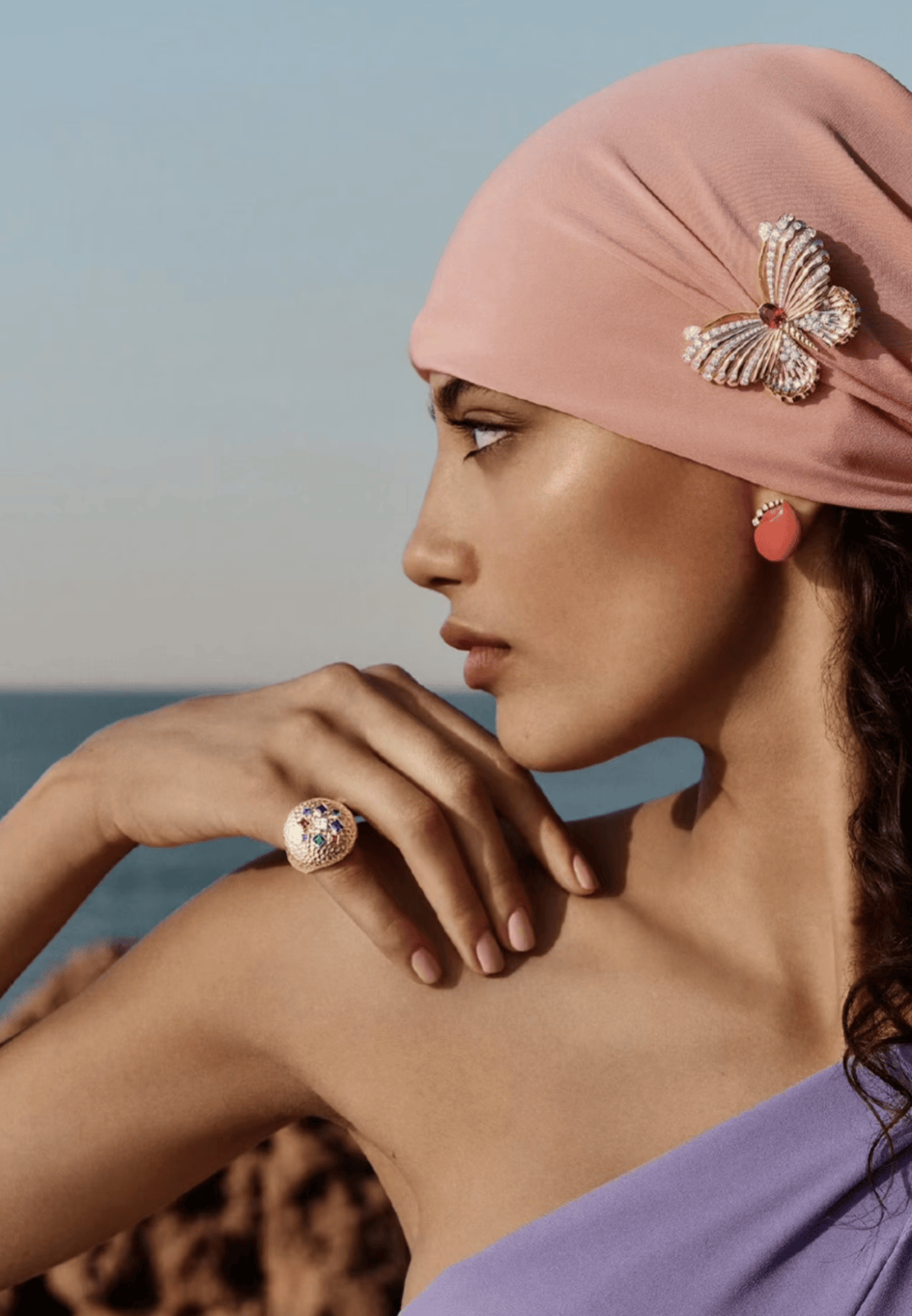 去年梵克雅宝也推出过海上冒险系列的高级珠宝系列,胸针别在头巾帽上, 打破了珠宝只能配礼服的刻板印象。▼