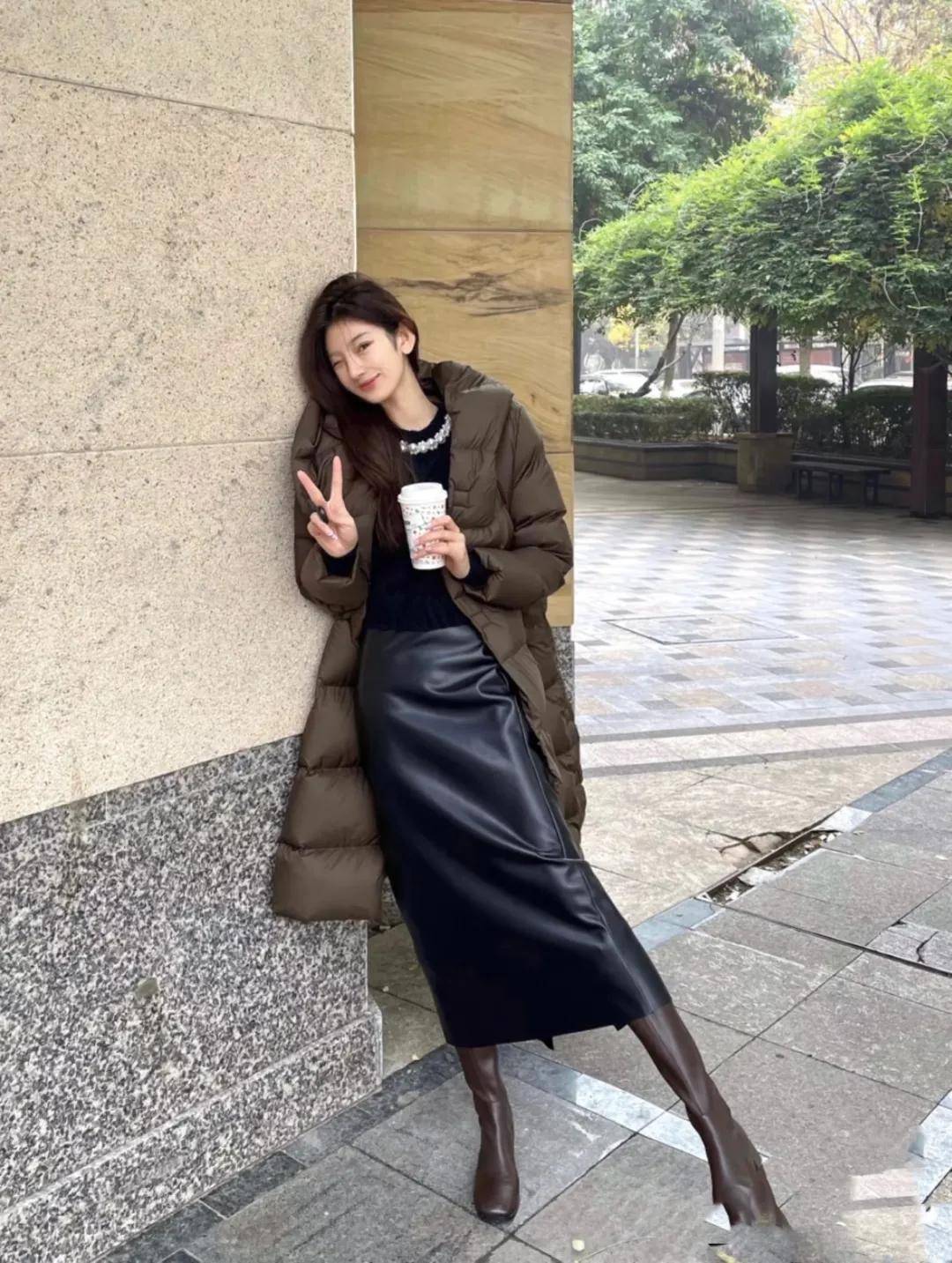 如果怕冷的话,选择一件长款羽绒服,再搭配上一双长筒靴,既给予身体足够的温暖保护,还能展现出自己的时尚穿搭品味。