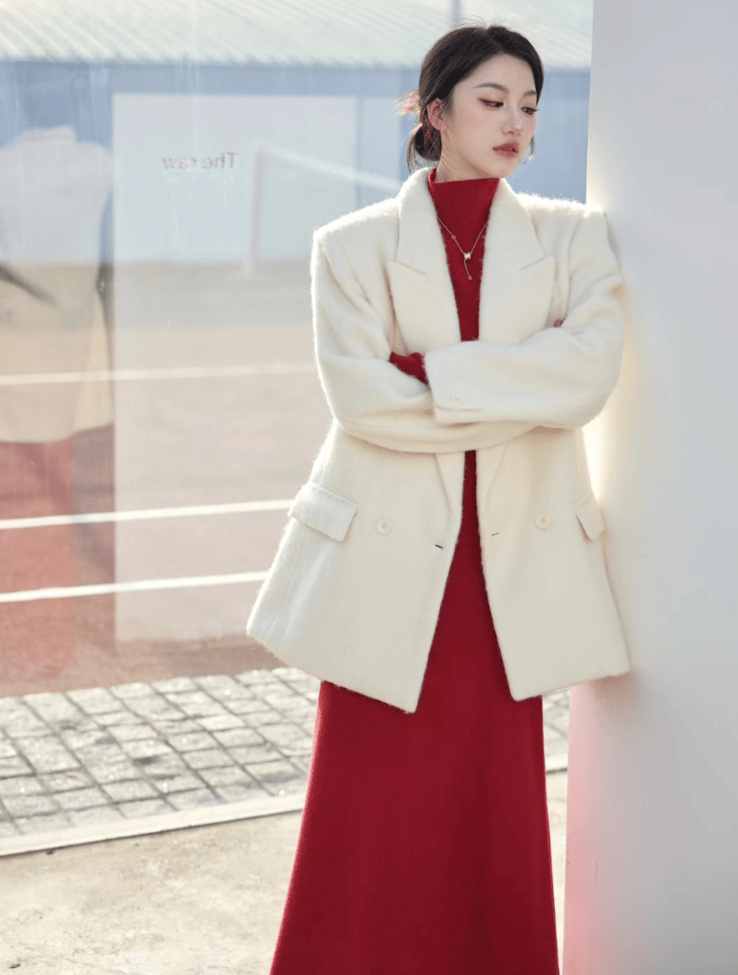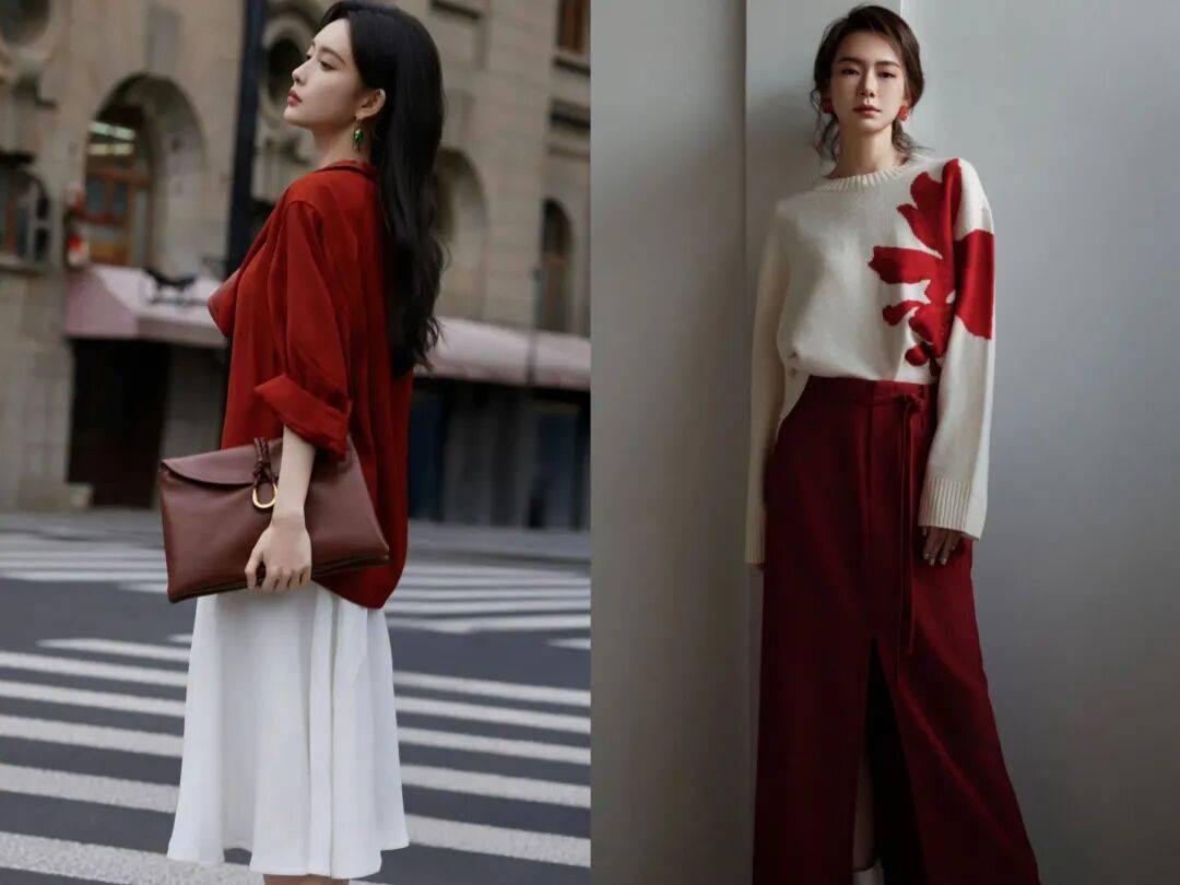 今年冬天这组配色,真的特别流行,不管是大衣还是毛衣,用红白搭配都能穿出高级感。