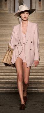 金合欢融合了绿色和黄色,温润而充满生机。它不像荧光色那样刺眼,而是带着植物萌芽般的柔和光泽。运用于宽松的亚麻套装、飘逸的真丝裹身裙以及轻薄的薄纱裙中,有一种毫不费力的惬意与活力。