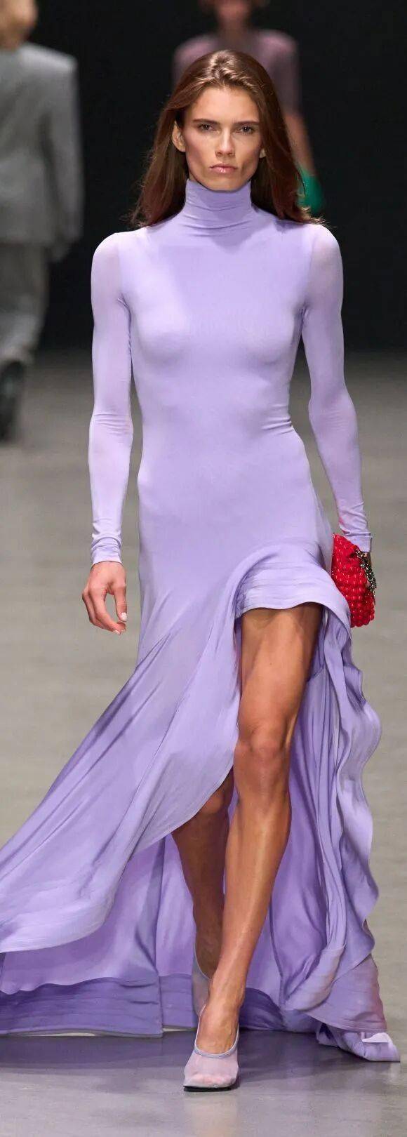 本季紫色呈现出前所未有的包容性:紫罗兰的深邃、薰衣草的浪漫,甚至带有灰调的莫兰迪紫,共同构成“紫丁香”的模糊边界。尽管难以统一定义,但其自带的神秘气质与女性魅力,仍让它成为品牌诠释个性风格的秘密武器。