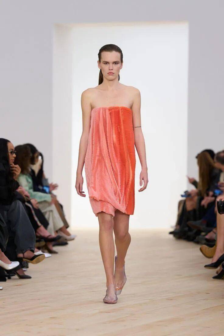 当石灰与水交融成灰,便诞生了本季备受青睐的石灰色。这种介于冷暖之间的中性色调,以沉静内敛的姿态融入各类单品设计,随面料厚薄的微妙变化呈现丰富层次——薄纱上的清透、呢料中的醇厚,皆诠释着“少即是多”的现代审美哲学。
