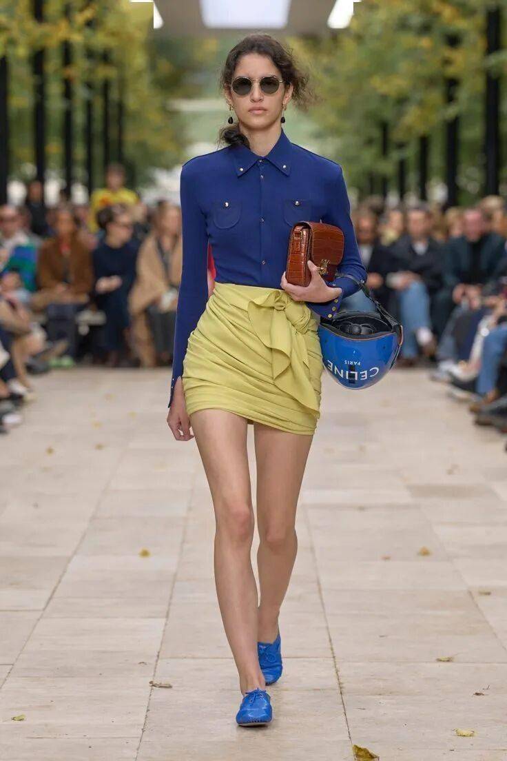如甜瓜熟透时的暖金色,甜瓜黄堪称本季“积极主义”的代言色。它汲取阳光的温度,在略显低迷的大环境中注入蓬勃生命力,无论是轻盈的连衣裙还是干练的西装,都能借这抹暖调驱散沉闷,成为点亮造型的情绪调节器。