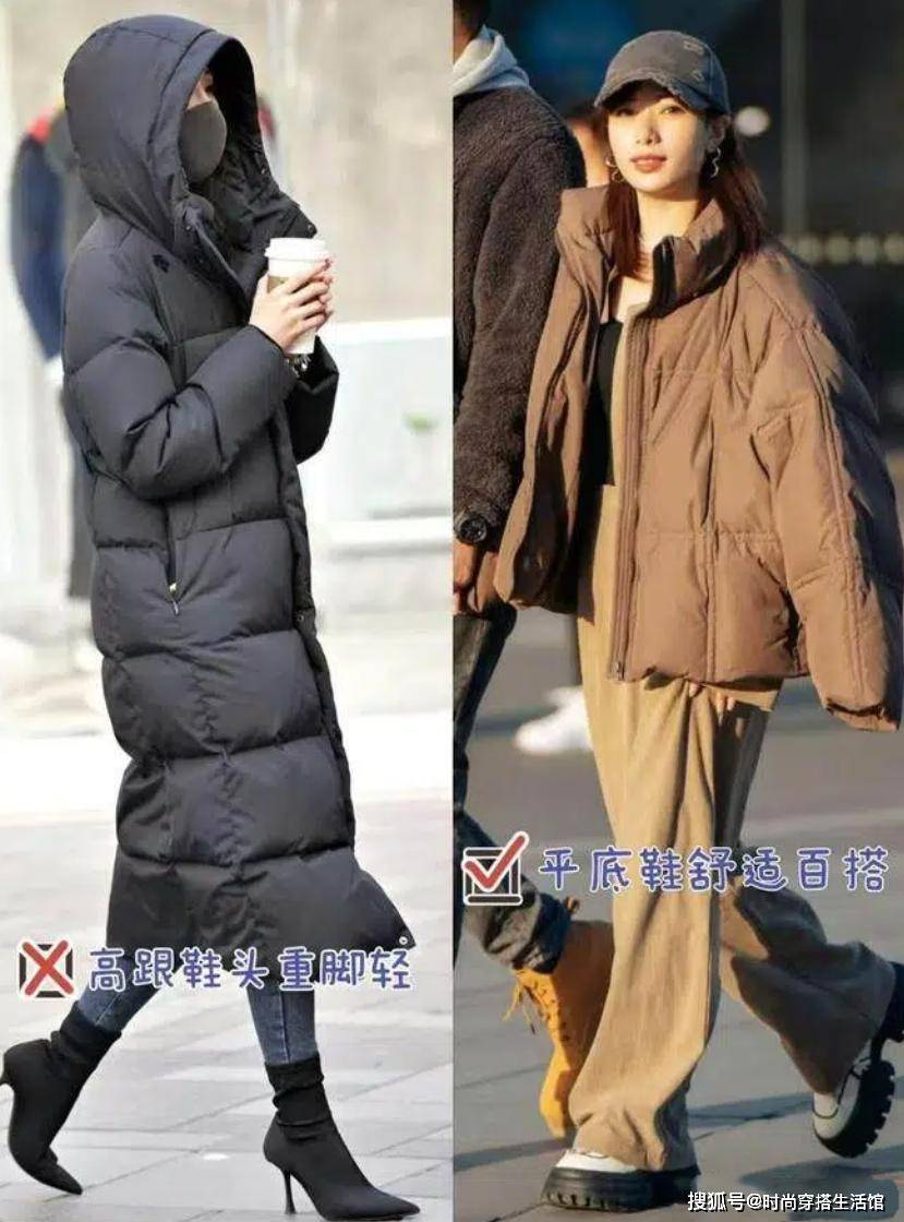 其次很多人选择穿羽绒服的时候还会习惯性的选择搭配高跟鞋,这样的穿搭比例确实很吸睛,但是冬天穿羽绒服搭配高跟鞋的话会显得不伦不类,其次就是高跟鞋的量感太强,搭配羽绒服整个造型会显得过于轻盈,从而容易出现头重脚轻的现象,此外高跟鞋是属于浅口的鞋子,冬天穿的话会让寒风冻僵双腿,从而出现不保暖的现象。