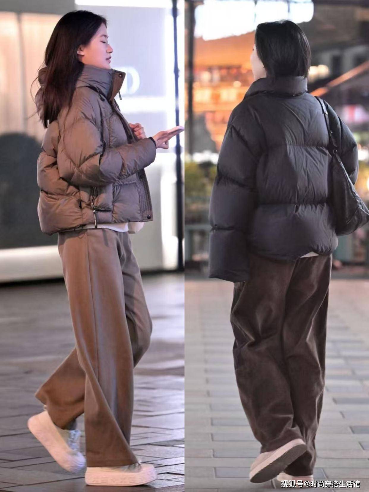 那么冬天的羽绒服究竟怎么穿出高级感呢?最常见的方式就是选择宽松的长裤,这样不仅可以弱化羽绒服带来的厚重感,同时还能转移视线焦点。阔腿裤我们可以选择牛仔材质、西装材质和毛呢材质的面料,这些面料不仅挺括有型,同时还能完美的修饰身材比例,搭配上短款羽绒服能够完美呈现出松弛慵懒的气质范,超级适合日常通勤、约会逛街的时候穿。