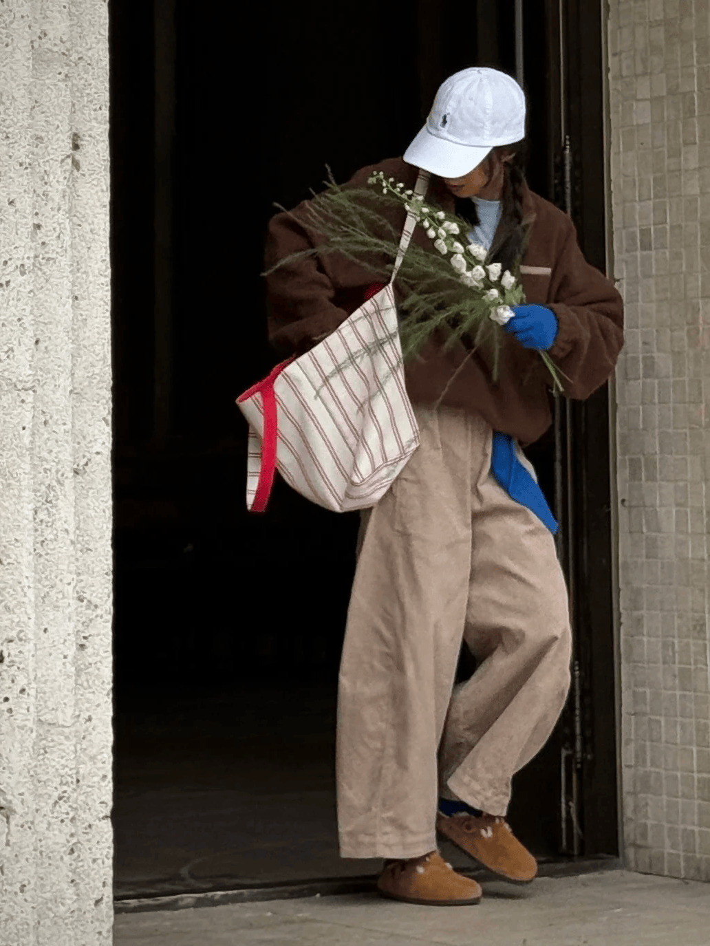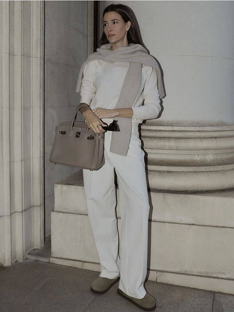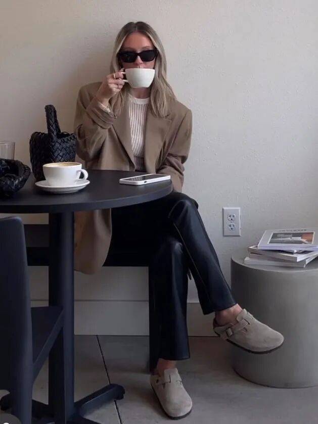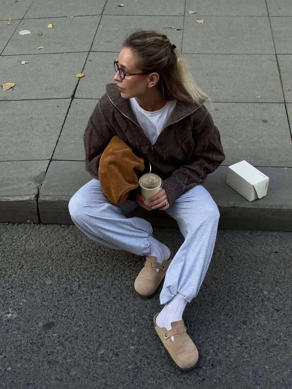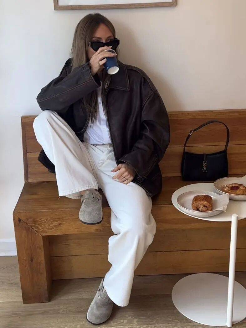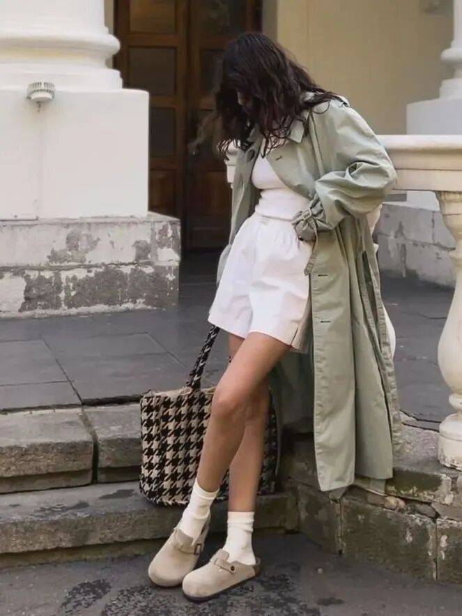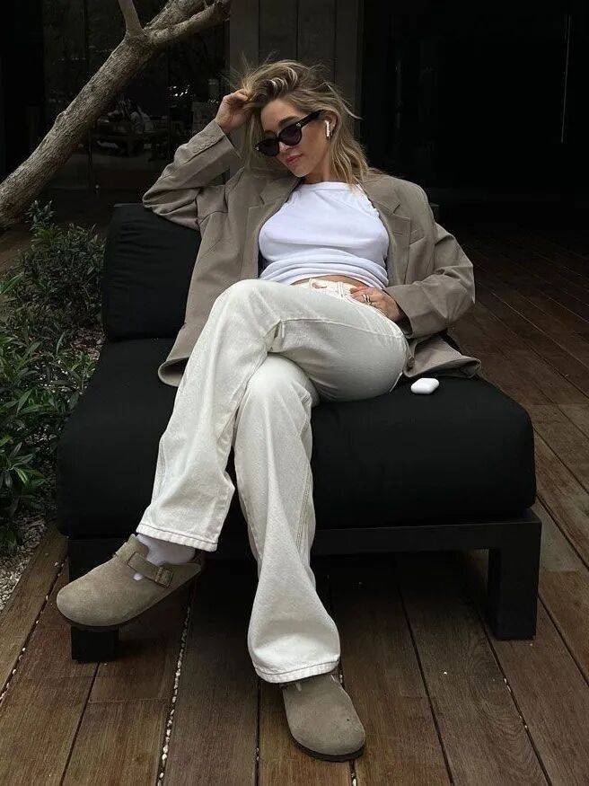 勃肯鞋配小白裤,是会呼吸的。