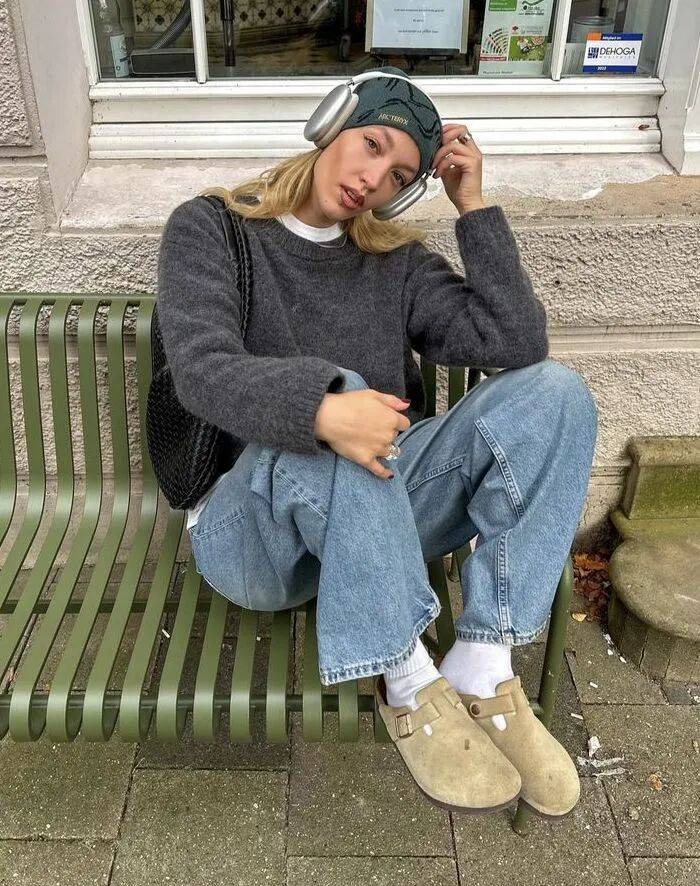 勃肯鞋配牛仔裤,是特别的。