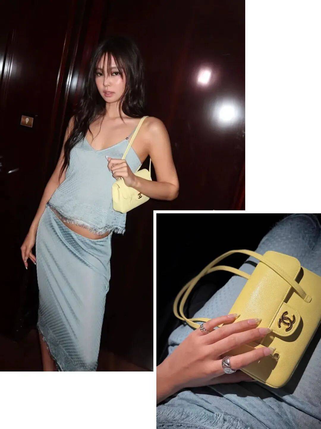 在此前去看秀的时候她还拿了一只同款的小鸡黄色,据SA透露这个配色在Jennie刚上身不久VIC就把第一批抢购一空了。现在排单的话至少要两个月以后了。