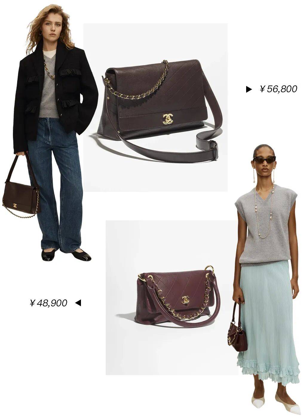 一个手柄,一条皮穿链肩带,口红粉饼一塞,压根不用在妆容或者穿搭上用力,包包就帮你撑起了该有的排面。