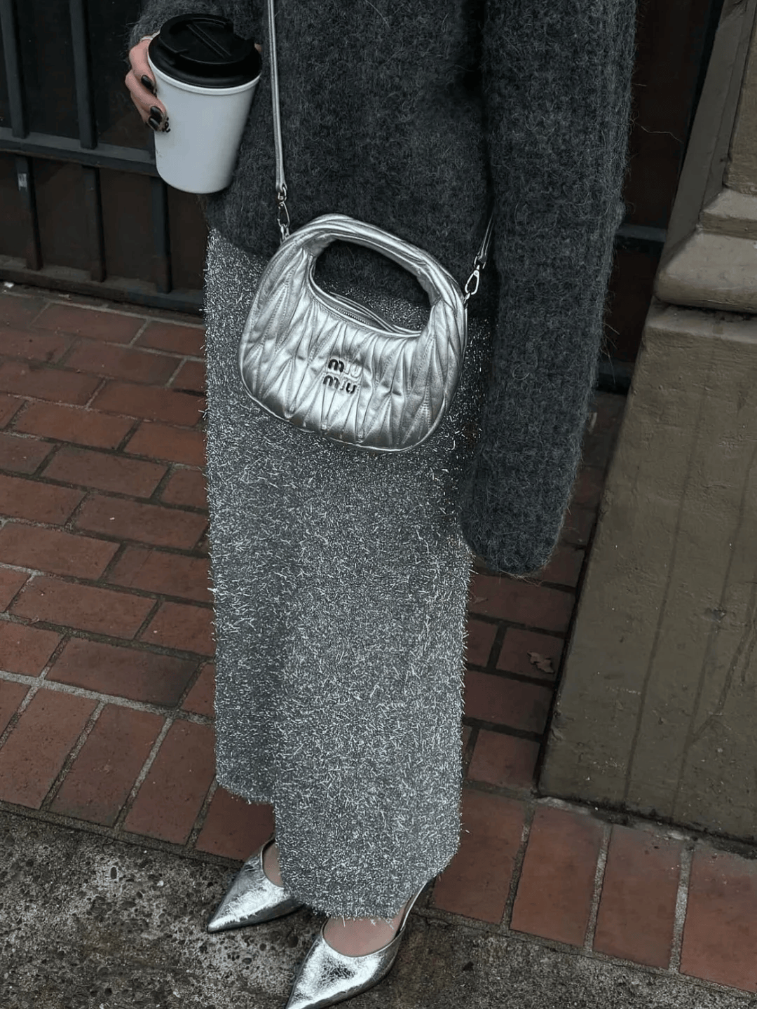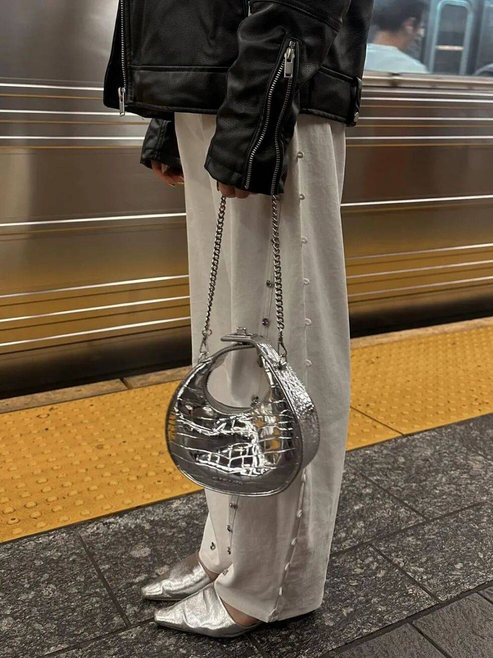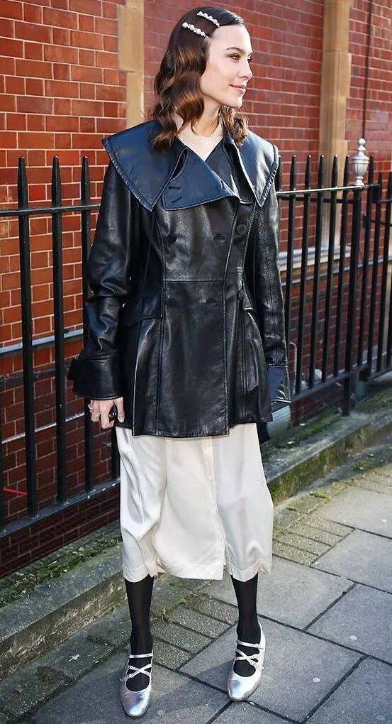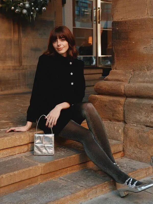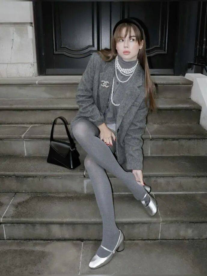 尤其是一身黑白灰的穿搭,一双闪亮的玛丽珍鞋就能瞬间提亮全身,清冷却不疏离,像晨曦中洒下的一束银光。