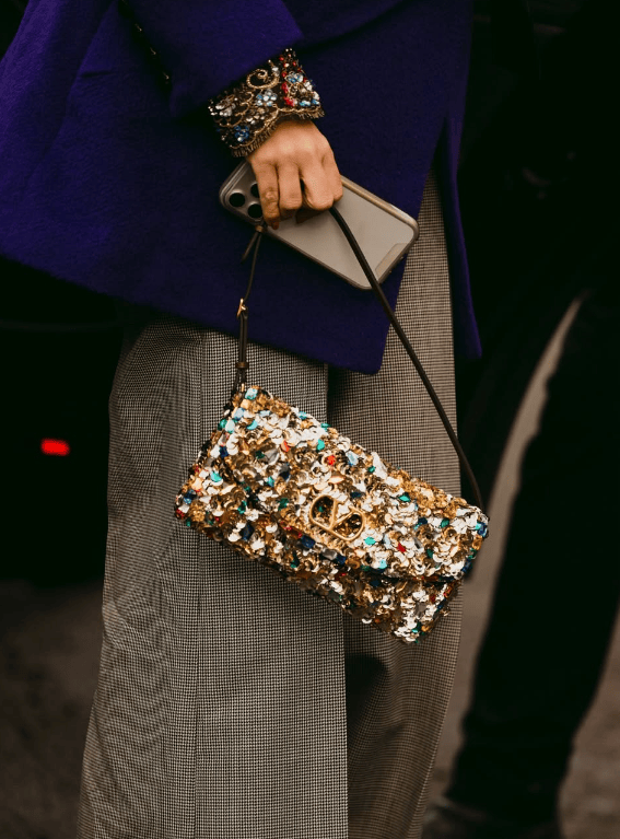 推荐选择小尺寸的闪亮包包,精致而不失贵气,恰到好处的点缀,堪称独特的加分项。