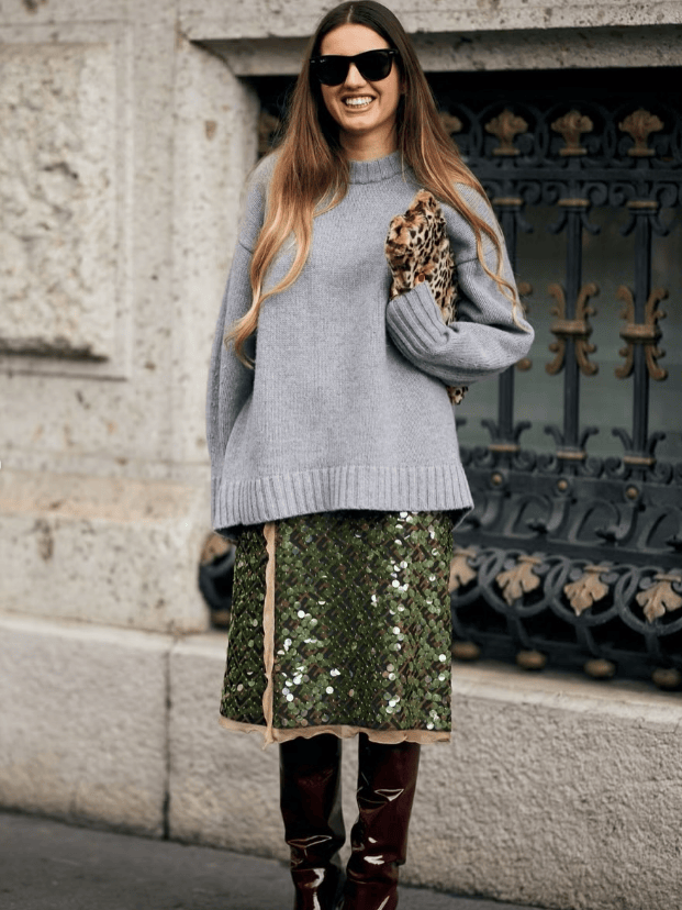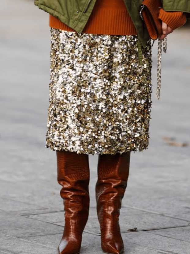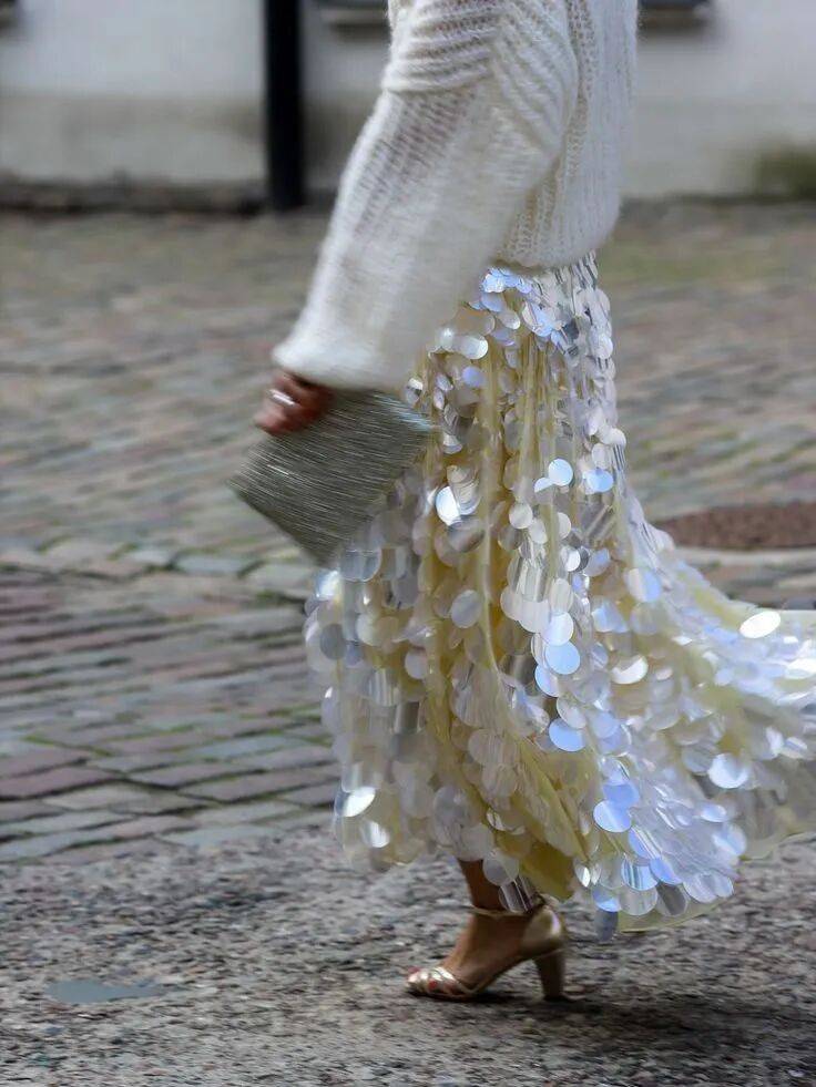 当然,像比较厚重的衣物搭配,亮片裙配靴子也是个不错的选择,既有酷感,也有璀璨的正式感,那是对生活不灭的希望啊~