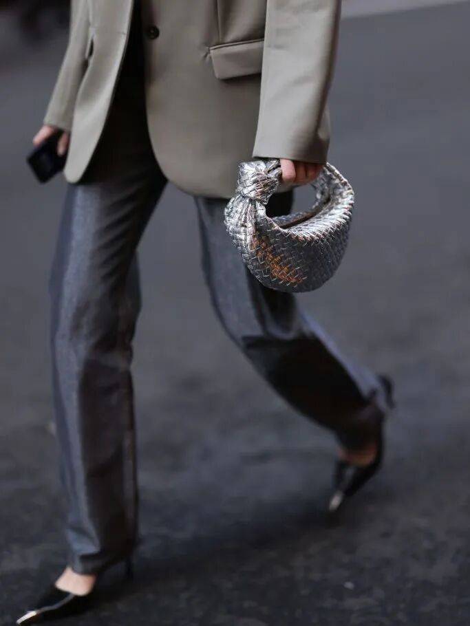 不少品牌都有类似的款式,Chloe、Miumiu、BV都有金属质感的元宝包,容量足够,搭配起来也很精致。