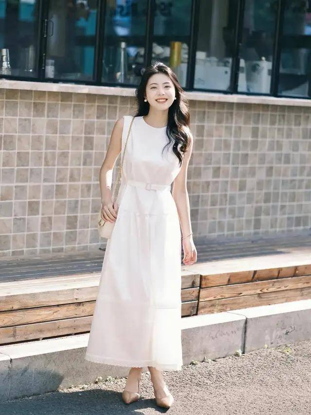 就好比如我们还可以换成一条高腰收腰款的白色无袖连衣裙。当你走路时,裙摆微微摇晃,就像一句没有说出口的“我本如此”,可以根据自己的气质来选择属于自己的那一条初恋裙