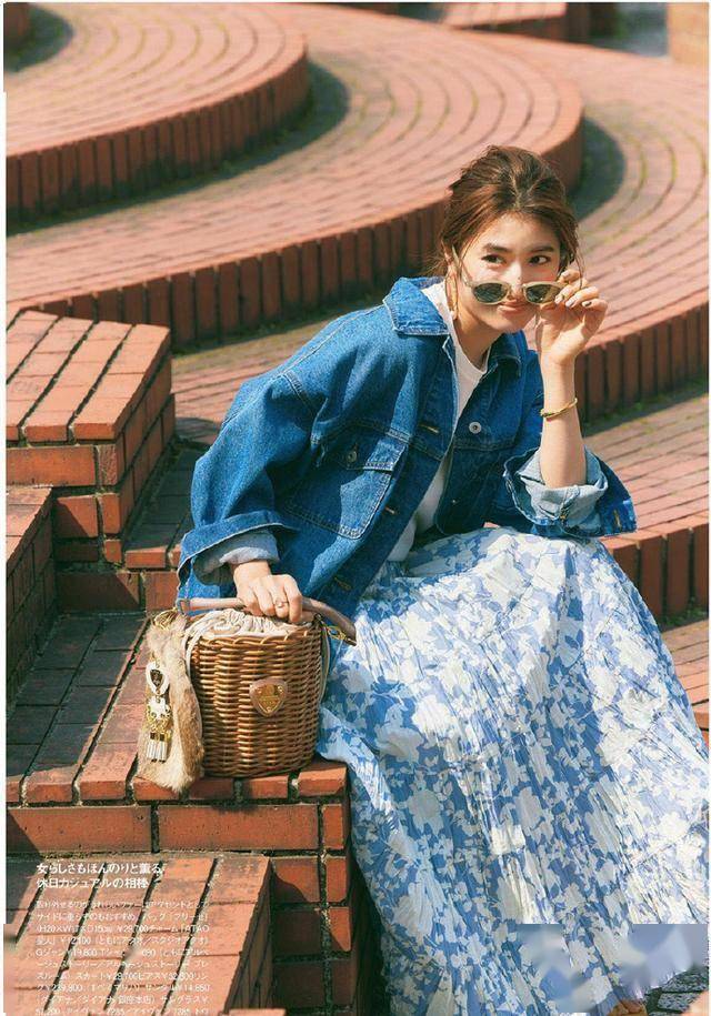 碎花的百褶裙是浪漫的代表,搭配白色T恤,配牛仔小外套,减龄又俏皮,春天踏春这么穿,太美了。