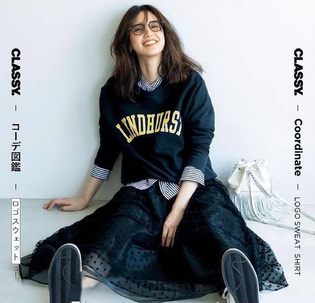 像这种植绒网纱也是多层次,用衬衣和字母卫衣叠穿,俏皮少女的裙子一样可以穿出一种透着几分通勤的休闲气质。