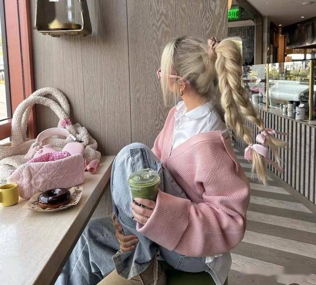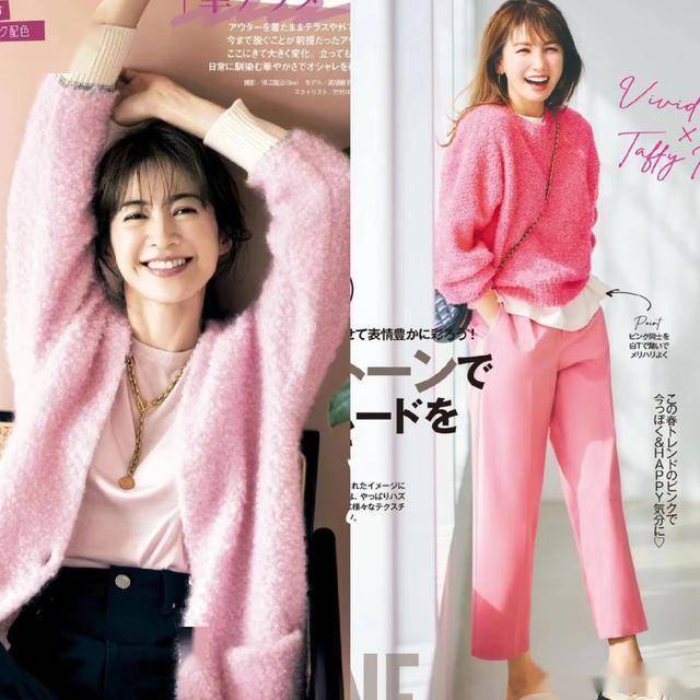 粉色的毛衣或是卫衣,减龄效果很好,可以配一条黑色的长裙,增加了沉稳感,又显得高级。