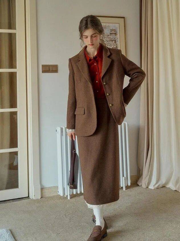 也可以尝试与棕色西装外套相呼应,这样的细节关联,不仅能让整体穿搭更协调精致,也让本身通勤场景的氛围更融洽好看。