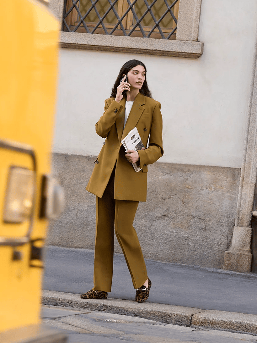 例如一套西装套装,搭上一双棕色乐福鞋,并不觉刻板,反而很有亮点与时髦度,是放大风格的加分项。