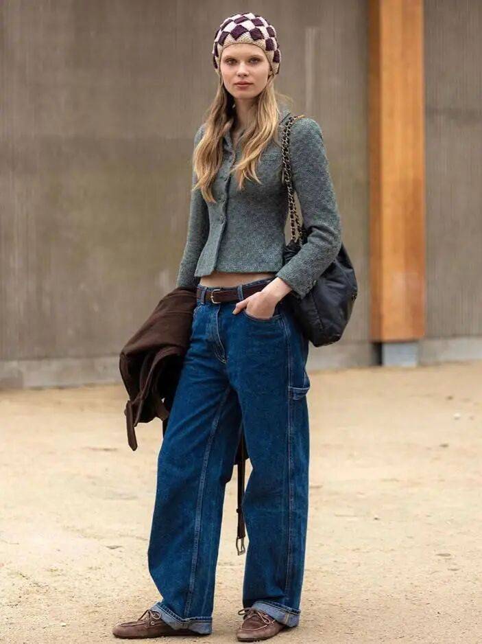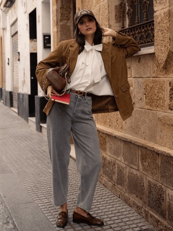 想要将棕色乐福鞋穿出地道的复古感,关键在于与那些有时代印记的单品进行组合。