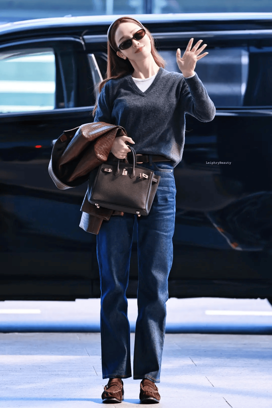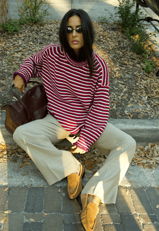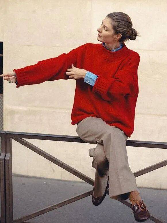 与棕色乐福鞋搭配,比黑色更为惊艳~高级而不失慵懒。
