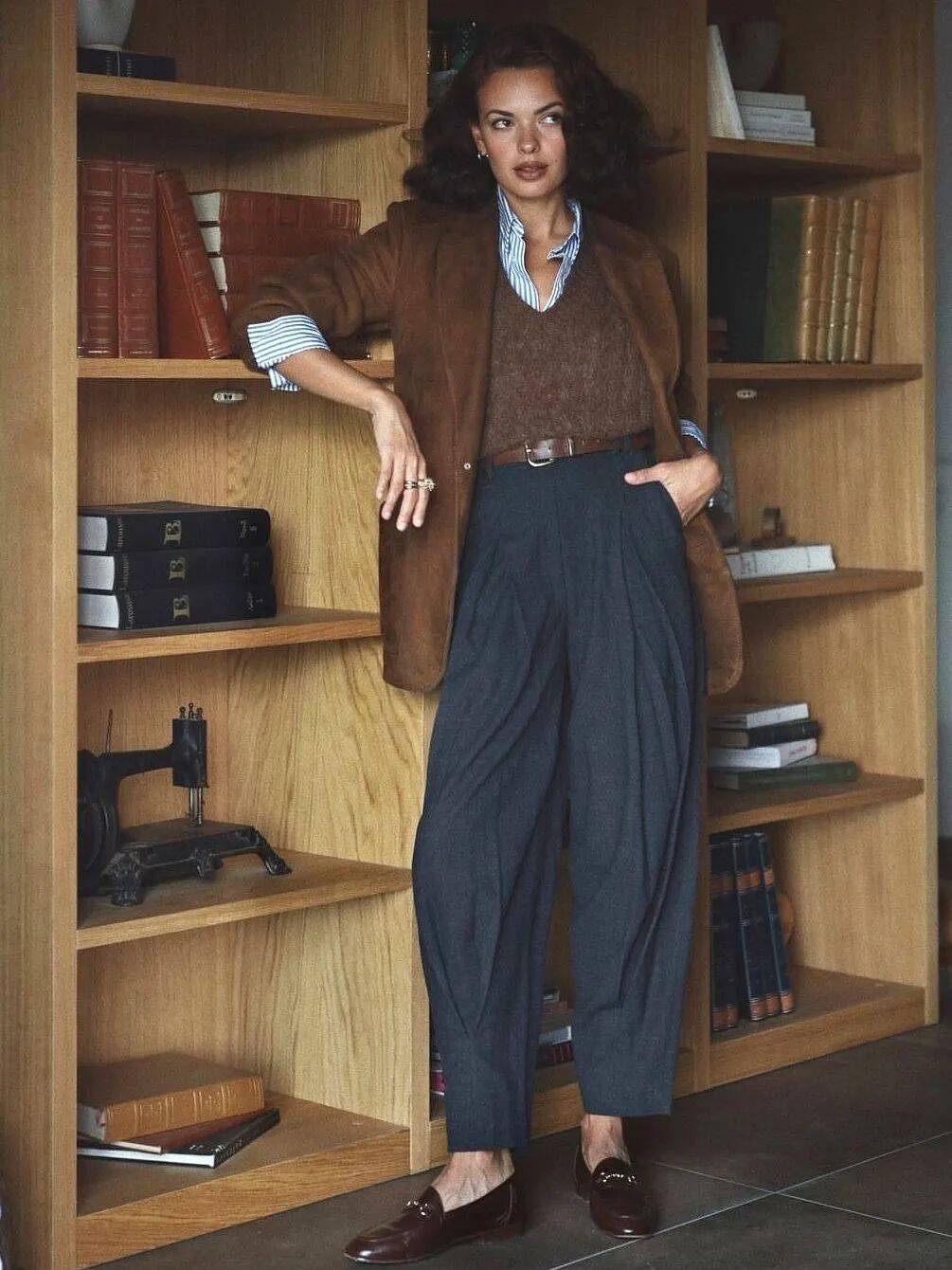 棕色乐福鞋,是智性风格的气质关键。自带旧书页与木质调的沉静气息,恰如思考者不事张扬的棱角。