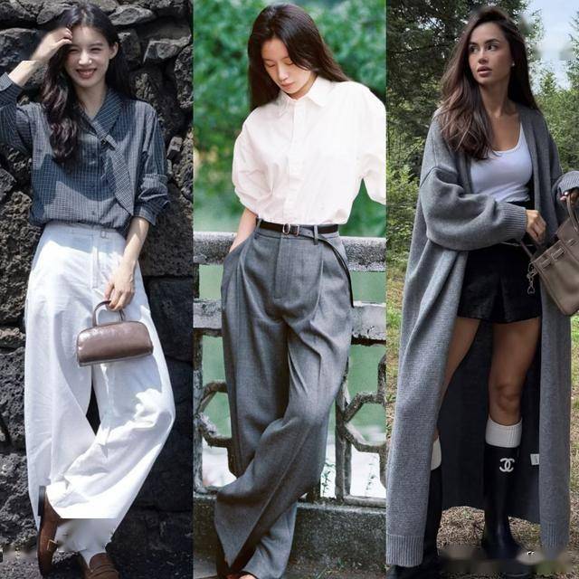 如果你有一件简约的白衬衫,可以配一条灰色的阔腿西裤,一下子职场精英感就轻松穿出来,带着理性高级的知识分子风,优雅的气质直接拉满。