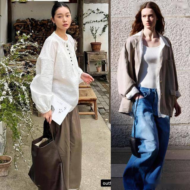 白色廓形衬衫,它带着一些休闲的风格,可以配一条卡其色的休闲裤,配色干净自然,有些少年感,减龄不错,很适合春日踏青时穿。