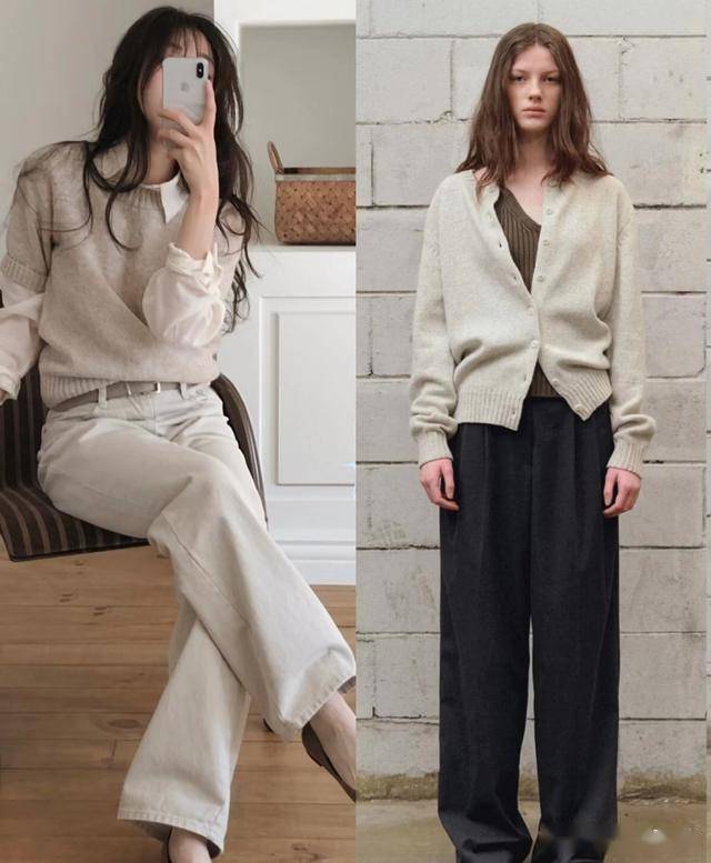 很喜欢燕麦色,它低调柔和,自带柔光滤镜效果,春天的时候可以选择一件燕麦色的毛衣,搭配同色系的牛仔裤,简约干净的配色,知性高级又显得温柔典雅,显白效果也非常好。