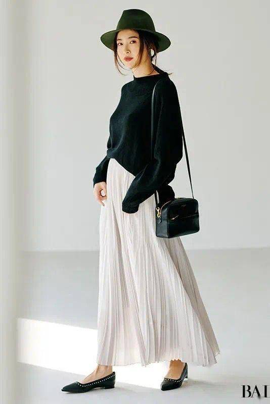 褶裥之间的优雅,随着一举一动彻底释放,柔美的弧度,使气质更加温柔,配双尖头鞋,美到骨子里。