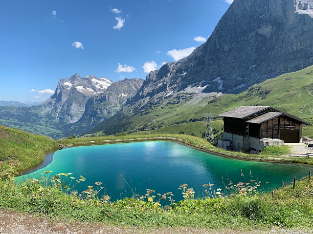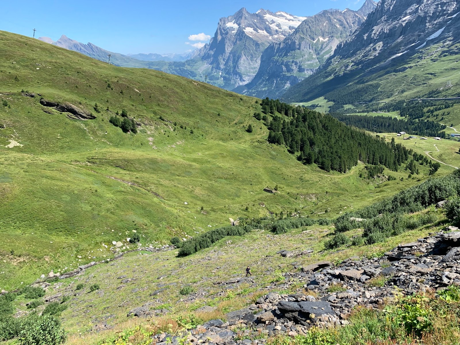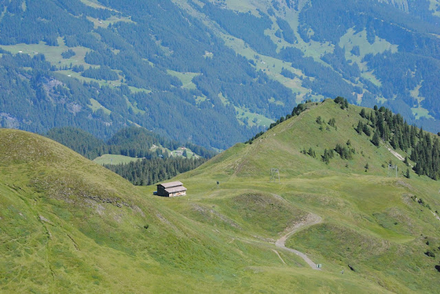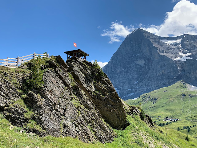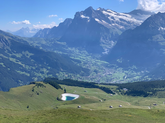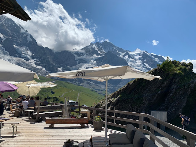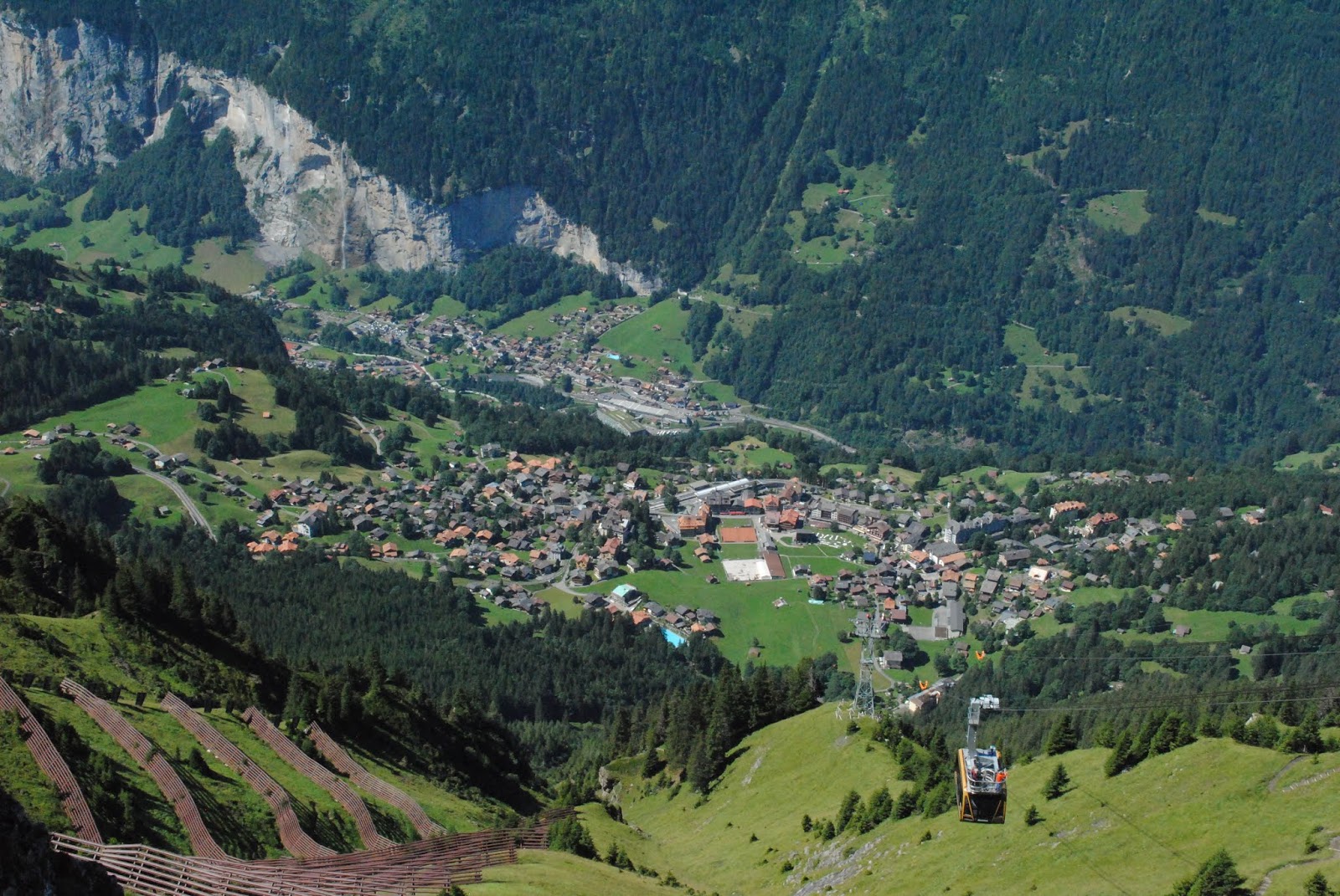 我们在文根没有多逗留,直接就上了前往Mannlichen的缆车,十分钟之后下了缆车。往山下看,不远处就是文根小镇,更远处位于山谷之中的应该就是劳特布龙嫩了。