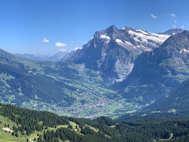 这是少女峰东侧山谷中的格林德瓦Grindelwald,文根Wengen和劳特布龙嫩Lauterbrunnen都在西侧。
