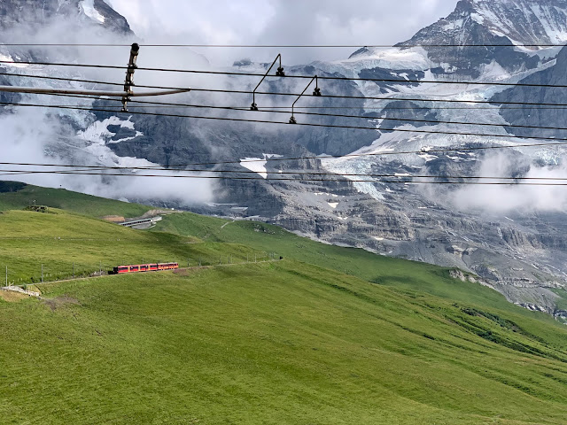 但因为下午一点才能上少女峰,而最早离开少女峰的车已经排到了4:30,下来之后徒步一个半小时到Mannlichen缆车站,可能要6点以后,缆车道要关闭了,所以行不通。售票员说你还是不要这么折腾了,放弃徒步吧,下了山直接坐火车去文根,然后回Wilderswil。