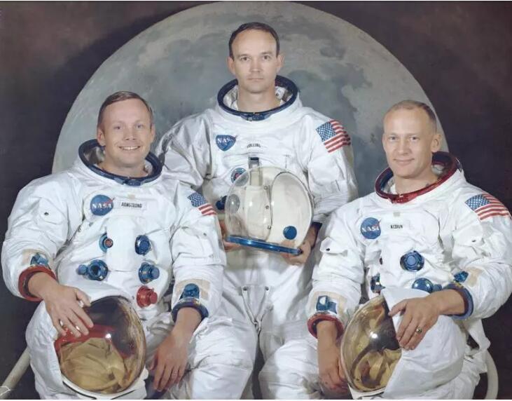 从左到右分别为尼尔·阿姆斯特朗(登月指挥官)、迈克尔·柯林斯和巴兹·奥尔德林。