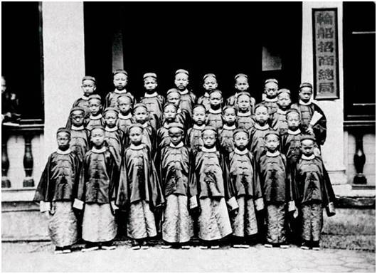 1872年夏,第一批留学生到达美国,30名幼童平均年龄不足15岁。清朝前后共派遣四批共120人,计划完成学业时间为15年。