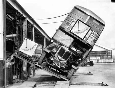6、1933年伦敦的双层巴士制造商在验证巴士的安全性。