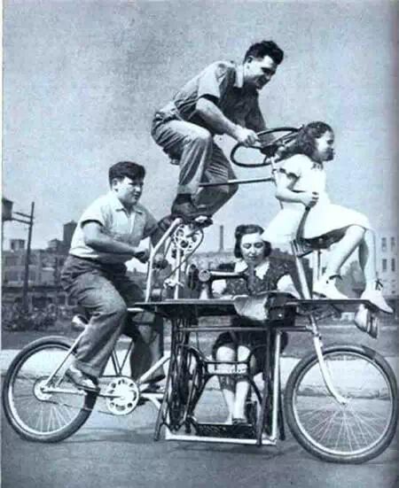 3、1939年的一家四口自行车,还能带上缝纫机。