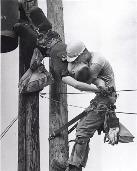 1、“生命之吻”,1967年一名工人触电了,另一名工人对他进行人工呼吸,最后救回了他。