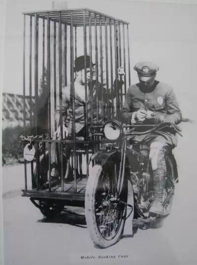 4、1921年老式的警车,笼子里装的是嫌犯!