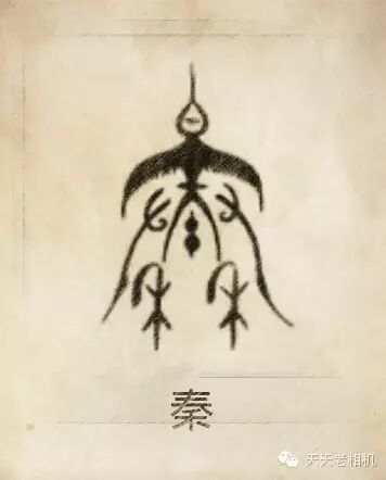 姓图腾,秦是秦族的族称。它由“玄鸟殒卵”、“双手供奉”和“禾苗”三部分组成。它是“燕子殒卵”与嘉禾的复合图腾,秦人的祖先是有虫乔女女华,她吞燕卵生伯益,伯益为秦人男性祖先。其女性祖先为有虫乔氏女女华。 始祖:伯益。