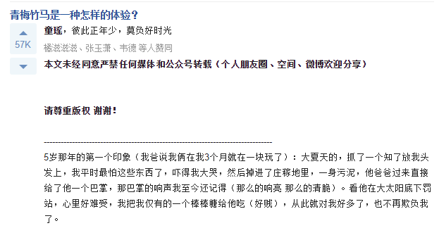 凭借这个不算长的知乎首答,童谣同学获得57000个赞。。。