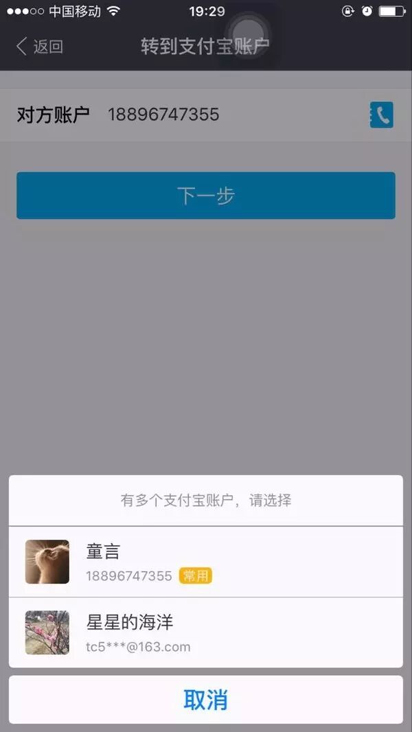 这个电话号码对应的两个支付宝账号,一个正是诈骗者使用的账号,另一个一个为童言。。