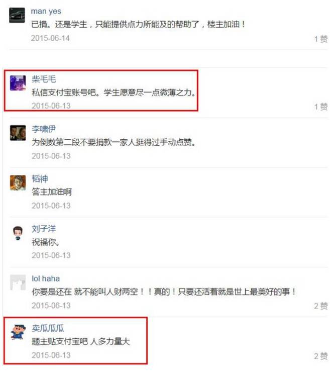 之后网友陆续打款支持。。纷纷伸出援手。。