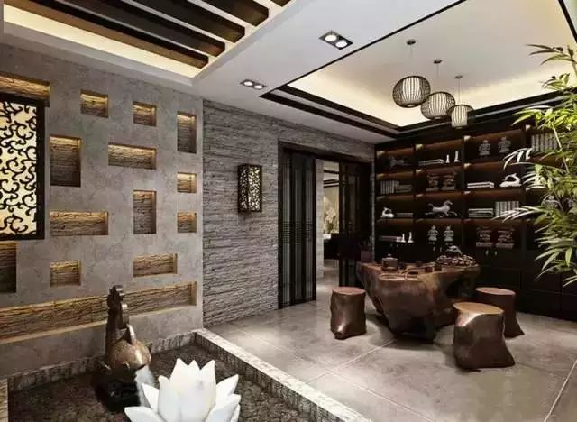 中式茶室的装修讲究一种韵味,从传统茶文化的出发,烘托茶韵。中式风格一种“此时无声胜有声”的意境,无论是木质的色彩还是中式流畅的线条,都给人一种宁静致远的感觉,简洁淡雅!