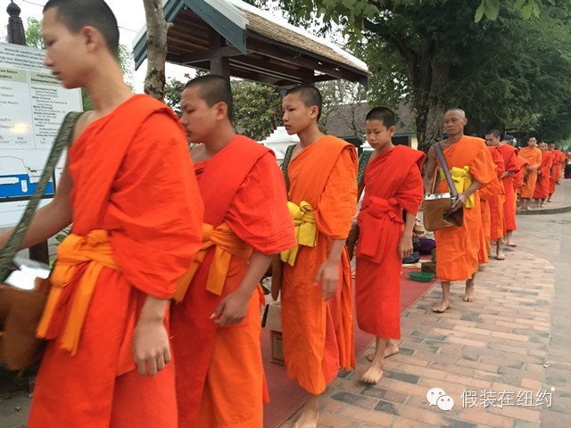 有寺庙,当然就有和尚。老挝全民信佛,每家的男孩子都必须出家一次。在琅勃拉邦街头,随处可以遇到僧人。