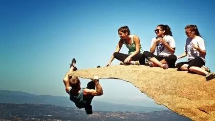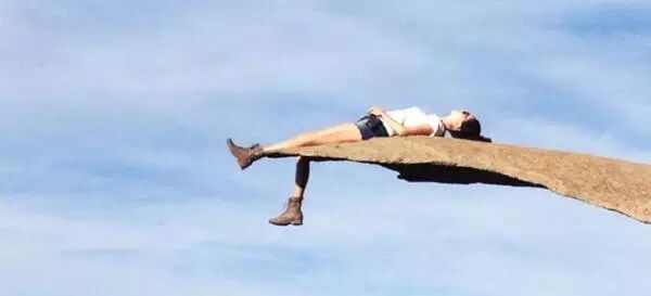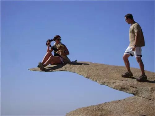在美国加州著名的沿海城市圣迭戈附近,有一块非常薄的岩石,也称薯片岩石(Potato Chip Rock)。这块看似一折就断的石头引来了许多人前来拍照,游客好像置身在悬崖边,或是云端。