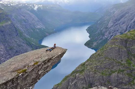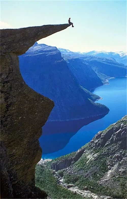 挪威Trolltunga是一块崇立在挪威Skjeggedal山上的奇石,由于岩体本身伸出崖边很远,Trolltunga亦被称为巨人的舌头或者是恶魔之舌。